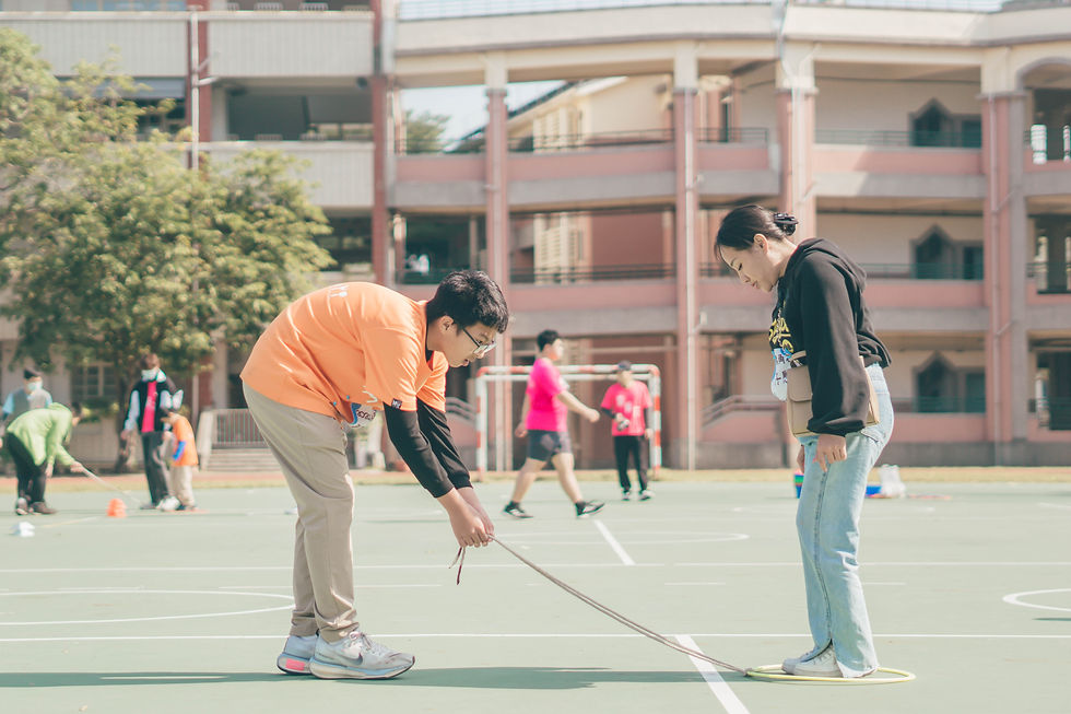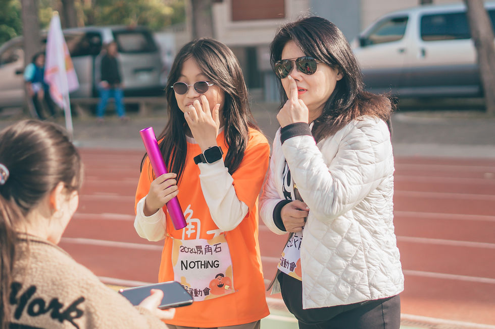下午競技類比賽,孩子成了場上的主角,而家長們則成為他們最強的啦啦隊和隊友。有些隊伍因為人手不足,家長主動上場出賽,想要跟孩子一同爭取榮耀。跑步過程中,一位家長不慎跌倒,除了工作人員第一時間關心,孩子也馬上衝過來關心媽媽,孩子從得知媽媽要下場比賽,起初是滿滿的擔心,比賽時在跑道旁視線追隨家長,最後攙扶家長去救護站; 不只是家長站在終點迎接孩子,孩子也能在家長跌倒時伸出援手,每個家庭都在這場運動會裡相互依靠、一同前進。